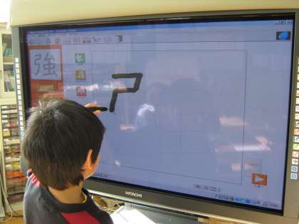 今日、国語の時間に新しい漢字を学習しました。「強」という漢字です。電子黒板でかき順の練習などをしました。そのあと、ドリルで復習しました。