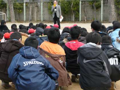 避難訓練をしました。教頭先生の話を聞き,地震の時の避難の仕方を身につけてくれたことでしょう。