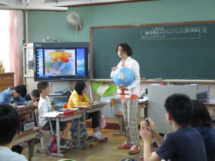 地図や地球儀で日本や元の場所や大きさを確認した後,資料を基に「鎌倉幕府がほろんだことと元寇は関係があるのだろうか。」という学習課題を一人一人の子供たちが,考えました。ノートに自分の考えを書いたり友達と話し合ったりしました。教室の後ろには,子供たちの調べたノートが掲示してあります。社会科に興味をもつ子供が増えるように工夫をしています。