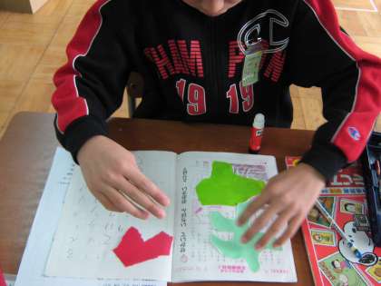 今日、国語で何にみえるかなを学習しました。紙をてきとうにちぎって、その紙が何に見えるかを発表していきました。いろんな人に見せましたが、その人その人によってかえってきた答えがちがいました。とても面白い結果になりました。