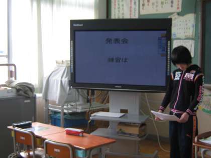 小学校生活を振り返って,浮かんでくる思い出や出来事を友達に向けてスピーチする学習に取り組んでいます。話す内容が決まり,覚えて練習する段階に入っています。そして,よりわかりやすく伝えられるように,プレゼンテーションソフトで資料を提示し工夫しながらがんばっています。