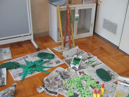今日、3校のみんなで力をあわせて頑張ったので、作品がずいぶん完成に近づきました。あとひとがんばりです。完成したら紹介します。