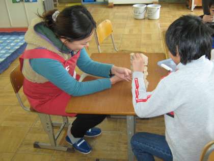 栄養教諭の先生と、ジェンガをして遊びました。いつ倒れるのかとどきどきしましたが、なんとか倒さずに勝ちました。また、先生と一緒に遊びたいです。今度学校にくるのは、4月すぎということなのでとてもさみしいです。