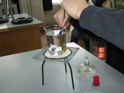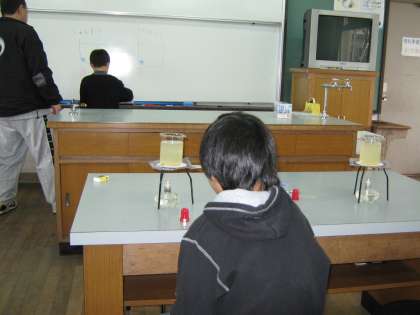 今日、理科の学習で水の温まり方を学習しました。ビーカーにおみそを入れて、おみその動きを観察します。参観日で、お父さん、お母さんが見に来ていたので、とても緊張しました。