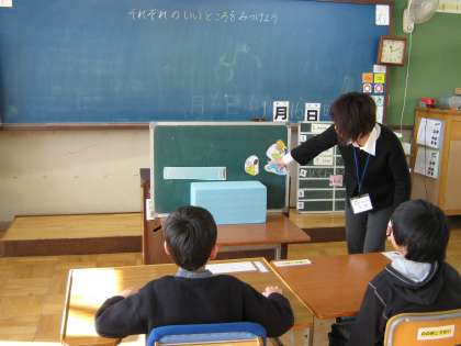 今日、道徳の時間にともだちのいいところ探しをしました。ビデオを見て、いいところを見つけてはなしあいました。参観日で、お父さん、お母さんが見に来ていたのでとても緊張しました。