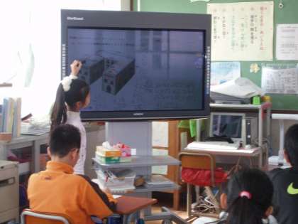 それぞれ自分のプリントを実物投影機でうつしながら,自分のやり方を発表しました。