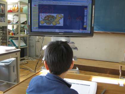 今日、国語の時間にひらがなの学習をしました。テレビに映ったものを、ひらがなでかきました。