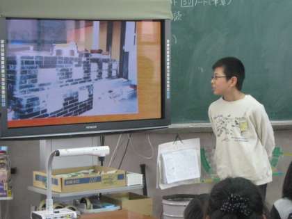 昔の道具の写真を持ってきてくれました。実物投影機で大きく写して,みんなに見やすくして,説明を聞きました。
