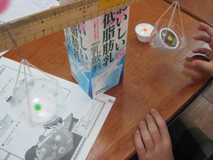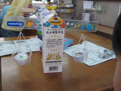 同じ入れ物に入れた塩・小麦粉・砂のおもさはどうでしょう?予想はさまざまに分かれましたが,実際にてんびんで比べてみても,塩と砂が微妙なちがいで難しかったです。