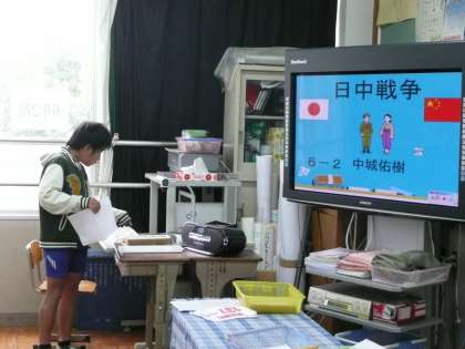 調べ学習の発表会をしています。今日は「日中戦争」について,発表してくれました。みんな始めて知ったこともありましたね。