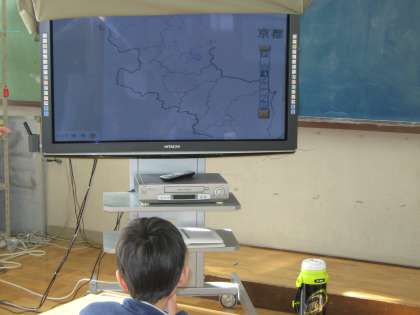 今日、社会の時間に地形の学習をしました。山や川を地図帳で調べて、電子黒板に書き込む学習をしました。