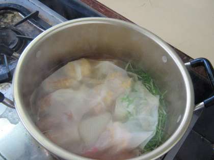 キッチンペーパーを,落としぶたの代わりに使いました。