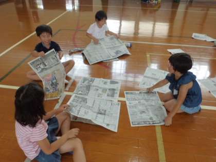 変幻自在に形を変える新聞紙の魅力を体全体で感じながら,楽しく取り組んでいました。