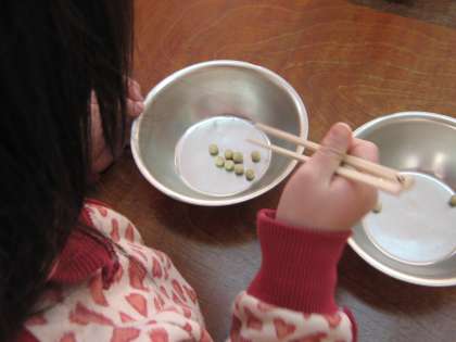 友だちとはやさを競いながら一生懸命練習しています。1・2年生の豆つまみ大会は2月1日(火)です。