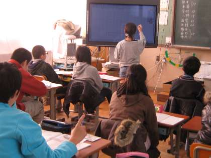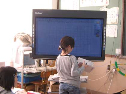 拡大図や縮図を書く学習をしています。みんな方眼紙の上に,正確にそしてていねいに書くことができました。書けた児童に電子黒板上で作図してもらい,みんなで確認しながら学習をすすめました。