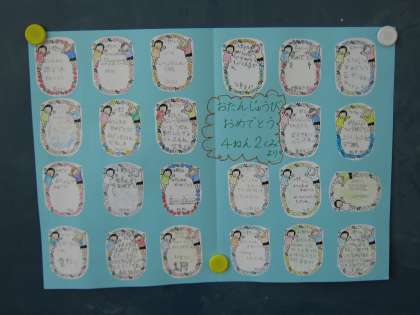 交流している4年2組のみんなから、お誕生日カードをもらいました。みんな、とてもうれしいことばかり書いていてくれて、すごくうれしかったです。大切にしますね。