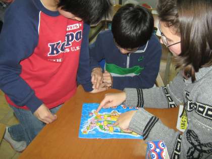 完成したパズルを使って、先生がどこの出身なのかや、どの州にどんなものがあるのかなどいろんな話をしてくれました。