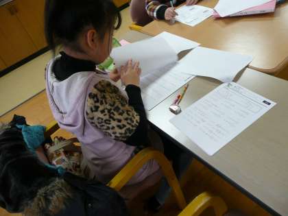算数のプリントを,解いていきます。自分で解き丸付けもしますが,分からないときは教えてもらえます。また,自分でコンピュータから,プリントを印刷して取り組む子もいます。