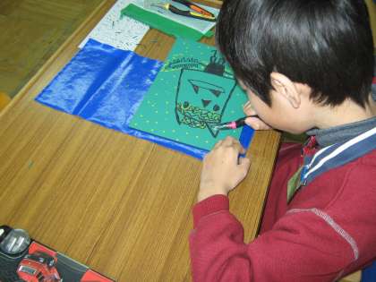 鬼の版画を彫っています。とても大きく強そうにできました。完成したら、また報告します。