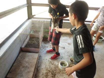 理科の学習で「骨」「関節」「筋肉」などの体のつくりの学習をしています。自分の体で筋肉の伸び縮みや人体模型で骨のつくりを確かめました。また,うさぎの骨や筋肉のつきかたは,人と同じかどうか予想した後,実際にうさぎを触って確認しました。動物の体にも骨・筋肉・関節があり,これらが働いて体を動かしたり体を支えたりしていることに気づいていました。