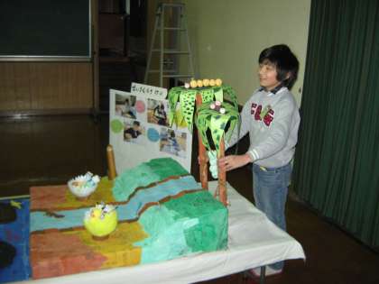 明日からの作品展に備えて、作品展の準備をしました。宝島を組み立てて、宝物を飾り付けました。明日15日から始まる作品展を、ぜひ見に来てくださいね。