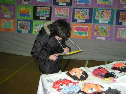 今日、4時間目に作品展の鑑賞をしました。どの学年もすばらしい作品ばかりで、どの作品について感想をかいていいのか迷いました。