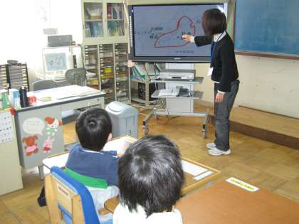今日の5時間目に、お隣の国について学習しました。日本から見て、どこにあるのかや、どんな遊びがあるのかなどについて学習しました。