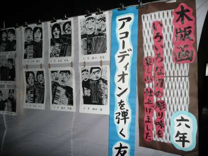 6年生の作品です。版画と卒業制作の2作品,みんな頑張って仕上げました。