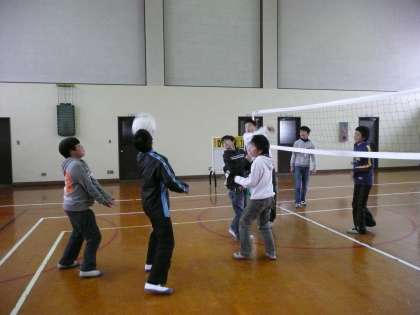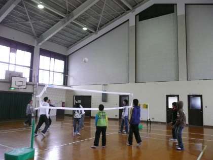 「ソフトバレーボール」です。今回は男女別で試合をしてみました。授業では男女が一緒のチームでした。
