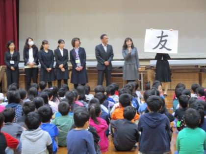 今月の朝会では担任の先生方から各学年のよさを漢字一文字にたとえて紹介してもらいました。今年度も前半を終え,子供たちは4月から様々なことを学習し体験し成長してきました。担任の先生たちにとってはそれぞれ自慢の子供たちです。