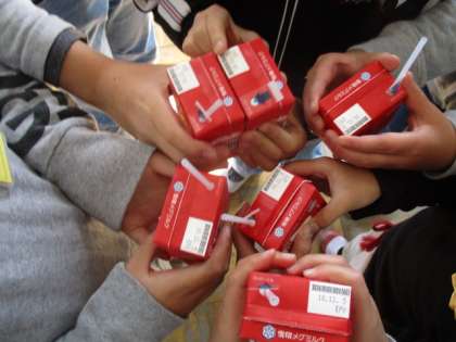 本日,お誕生日を迎えた児童がいました。給食の時間に「牛乳」で乾杯し,お誕生日をみんなでお祝いしました。