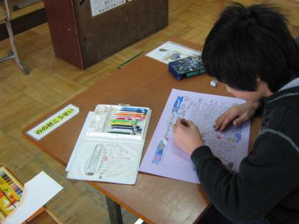 今日、自分のよいところを見つけようという学習に取り組みました。本が好きで、本をたくさん読むことや、大きな声で発表できることなどをかきました。