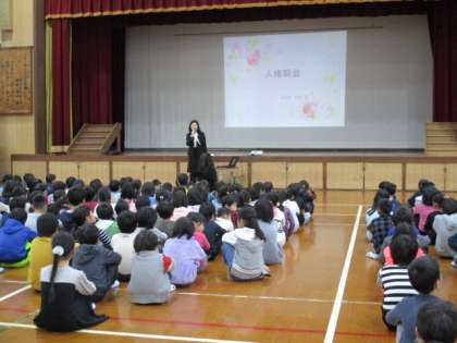 12月の朝会では「人権」について話しをしました。「人権」とは「人が人間らしく生きるために必要なあらゆる権利」のことです。子供たちには「ともだちっていいな」とう本を読んで,「自分を大切にしているか」「友達と互いを大切にできているか」ということを問いました。また,「自分や友達のいいところを見付けているか」「違いを認め合っているか」ということも問いました。