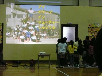 児童会の始めの言葉のあとは,全校合唱です。「ビリーブ」この会にぴったりのすてきな時間となりました。