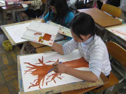 通常通りの授業となりました。5・6校時は図工です。運動場に出てトウカエデの木をスケッチしました。よく見て,そしてていねいに色をつけていました。