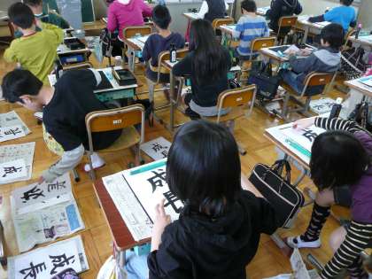 今日は,習字の学習をしました。その様子です。