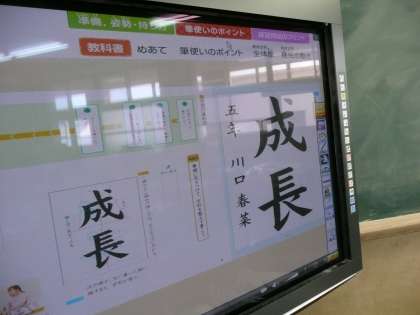 電子黒板でそのポイントをつかみました。担任からも,さらにうまく書く方法も聞きました。