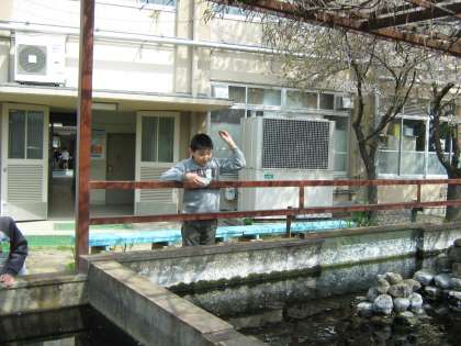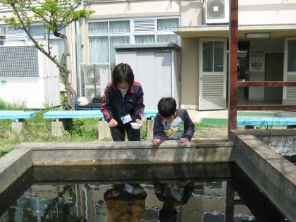 今日の1時間目に、こいとかめにえさをあげました。かめは、冬みんからさめたばかりみたいで、まだすこしねぼけているようでした。こいは、ばくばく食べてくれました。またあげたいです。