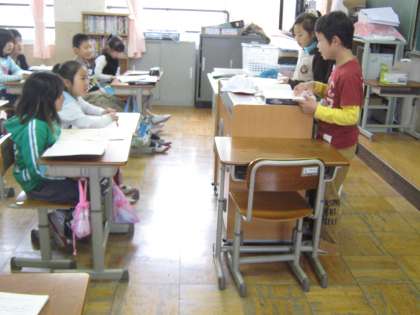 2組では今日音読発表会をおこないました。今学習している「白いぼうし」をそれぞれグループで考えた読み方で読みました。どのグループも登場人物の気持ちや情景を想像しながら頑張っていました。様々な工夫が見られてよかったです。そして最後は,自分たちの発表を撮ったビデオで振り返りました。