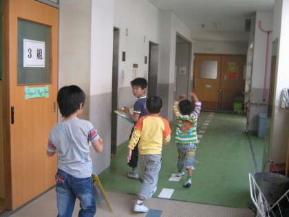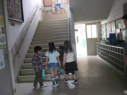 普段は行けない特別教室や2階・3階にも行きました。大きい学年が勉強している教室の前はそっと静かに歩けたかな?