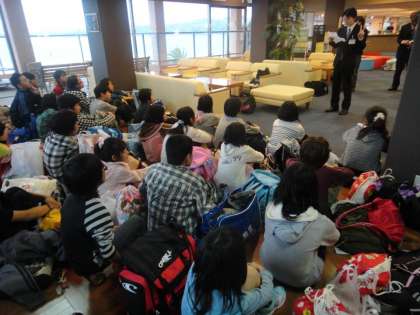 ホテルの人のお話をしっかり聞いています。