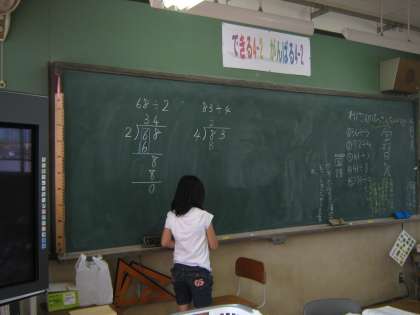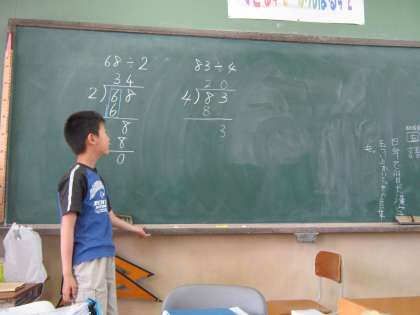 わり算の筆算をがんばっています。今日は,筆算のやり方をみんなの前に出て説明しました。わかっていてもみんなに伝えるのは難しいです。