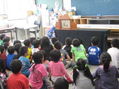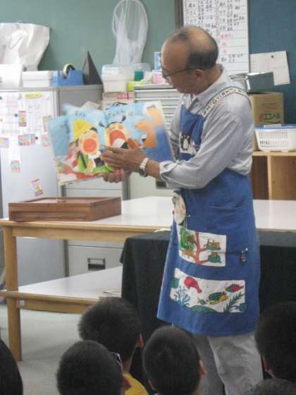 この日は,青空のもと,中庭で行われる予定でしたが,雨のため,第2図書室で行われました。