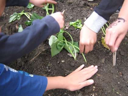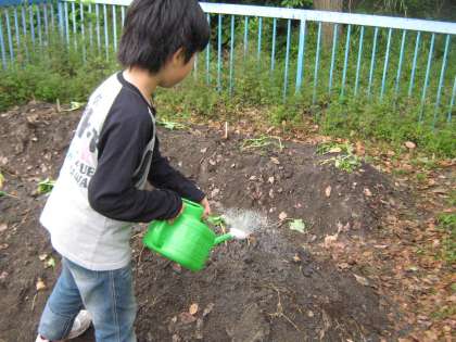 さつまいもの苗を植えました。秋には収穫して食べようと今から楽しみにしています。