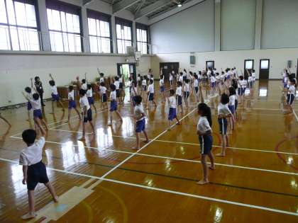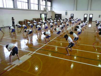 ソーラン節の練習もしています。軽快な音楽に合わせて,かっこよく踊っています。