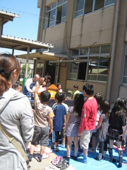 今日はよく晴れたので,中庭で行われました。