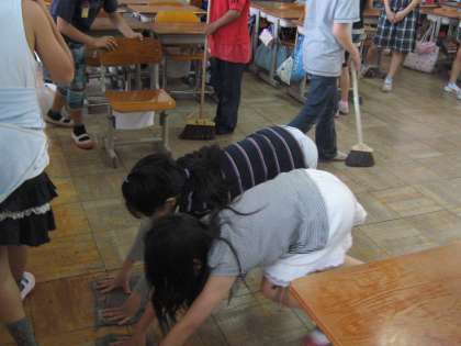 学年集会の後の掃除。早速変化が見られました。1組は気合が入っていました。教室・廊下ともきれいになりました。