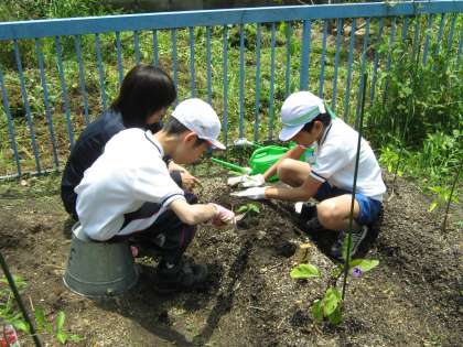 枝豆の苗を頂いたので、3組の畑に植えることにしました。たくさん枝豆が実ればいいと思います。