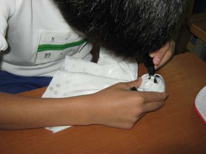 今日、運動会が雨で中止になりそうなので、てるてる坊主を作ってお祈りしたいと思いました。