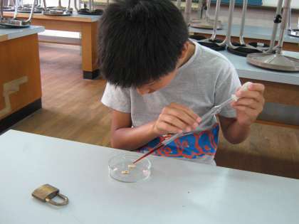 今日理科室で、インゲン豆にヨウ素溶液をかける実験をしました。インゲン豆の色が変わって、とても不思議でした。成功してよかったです。